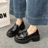 Shallow thick-soled thick-heeled muffin small leather shoes wind triangular buckle single shoes thick-heeled women