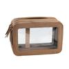 Vegan Leather Makeup Bag Double Zipper Layer Organizer Toiletry Storage Bag Clear Transparent Cosmetic Bag For Travel