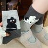 2 Pairs Autumn Vintage Women Cat Fish Printed Socks Cute Cartoon Middle Tube Soft Thermal Warm Crew Sock