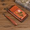 Dlouhé peněženky s květinovým vzorem ve vintage designu pro ženy Držák na módní karty na zip z pravé kůže
