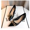 Women's Summer Footwear Black Shoes for Woman 2024 with Medium Heels Square Office Pointed Toe Fashion Chic Point Beau Today E A