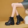 2024 New Spring and Autumn Fashionable Thick Heel Women's Boots Round Toe Solid Color Medium Heel Short Zipper Women's Boots