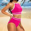 Elegantní design tílka: Vychutnejte si ležérní eleganci s tílkem bez rukávů s kulatým výstřihem a barevným designem pro moderní vzhled.. Tento plavecký top nejenže zakryje vaše bříško, ale také zvýrazní vaši postavu díky propracovanému střihu a push-up vycpávce pro perfektní padnutí.