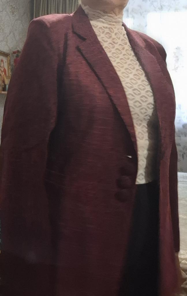 tobě: XL, poprsí: 96 cm, rameno: 38 cm, rukáv: 61 cm, délka: 62 cm.