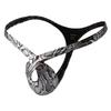 Snake-print Men PU Faux Leather Underpants Thong G String Sexy Underwear Lingerie Panties Low Waist Penis Pouch T-back Hombre