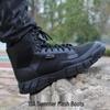 Step into comfort and durability with these ultra-light tactical mesh boots. Designed for summer training and security purposes, they provide exceptional breathability thanks to their mesh cloth upper material, keeping your feet cool and fresh even in the hottest conditions. The EVA insole ensures excellent shock absorption, offering support and cushioning for long hours on your feet. Ideal for those who prioritize functionality and style, these boots seamlessly blend sporty design with tactical performance.