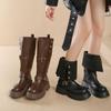 Black retro British style thick heel platform boots women's 2024 autumn and winter new boots tall and thin knight boots