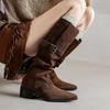 Western Pile Boots 2025 Summer Medium Tube Thick Heel Square Head Folded Cowboy Boots But Knee Boots Female Knight Boots