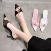 2025 Spring and Autumn New Fashion Versatile High Heels Women's Thin Heels Pointed Baotou Slippers Wear Rhinestones