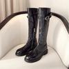 Grape mother autumn and winter washed inside and outside full horse leather thick-soled medium tube knight boots side zipper belt buckle high