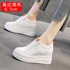 Early spring new leather inner height increase little white shoes women's 8CM thick-soled slope heel casual walking sports shoes show long legs