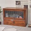 Retro Flip-Top Desktop Storage Box with Drawer and Cup Holder