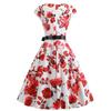 Dámské ležérní módní šaty midi áčkového střihu s kulatým výstřihem, plisovanými krátkými rukávy a retro květinovým vzorem