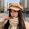 Suede beret children autumn and winter retro versatile duck tongue painter hat thickened warm face small octagonal hat