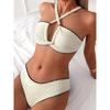 2-Piece Split Swimsuit Women's Hollow Textured Fabric Slim Sexy Pit Strip Metal Decorative Women's Swimsuit Cover