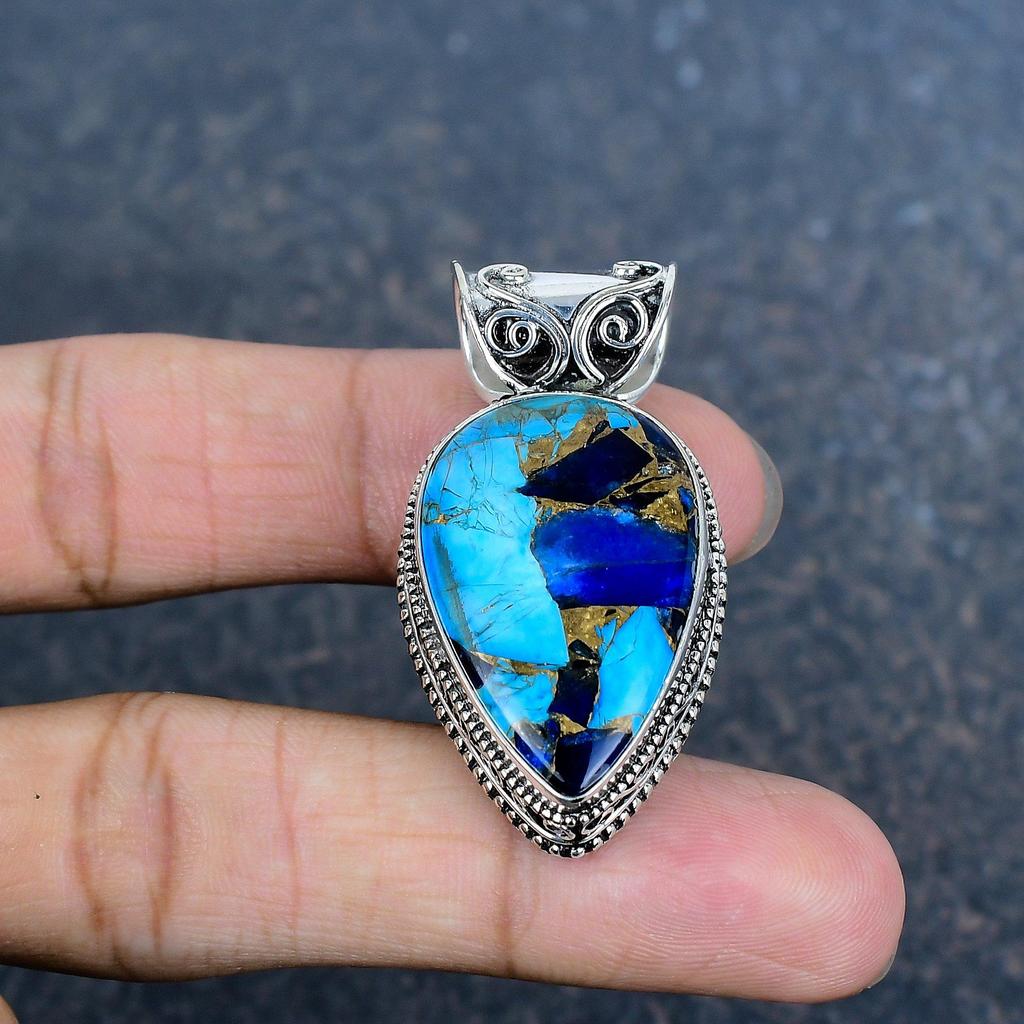 Copper Lapis Turquoise Handmade Gemstone Pendant, 925 Solid Sterling Silver Pendant Antique Jewelry, Love Forever Gift