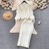 Autumn Winter Women Sweet Print Knitted Sweater Two Piece Set Single Breasted Cardigans Jacket and Mini Short Sheath Skirt Suit