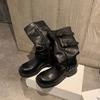 Cowhide~ Retro boots women's double buckle straps but knee boots side zipper thick heel knight boots