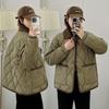 Xiaoxiangfeng rhombus down cotton clothes 2025 new leave-in foreign style loose contrasting color versatile short autumn and winter coat