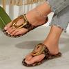 Large size flat-bottomed flip-flops women's new metal buckle leopard print hollowed-out beach cool slippers