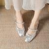 Women Sliver Square Toe Mary Jane Shoes Fashion Rhinestone Ladies Spring Elegant High Heel Shoes Street Style Women Pumps Shoes