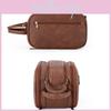 This travel toiletry bag features a water-resistant PU exterior and polyester lining, Designed for organizing toiletries and cosmetics, it supports dry and wet separation and expandable capacity for added storage. Suitable for daily use or trips, wipe clean with a damp cloth for maintenance.