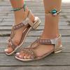 Fashion Vintage Ethnic Wind Soft Sole Sandals Women Boho Beaded Non-Slip Vacation Seaside Flat Beach Shoes Plus Size