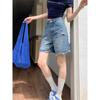 Kumikumi American Retro Washed Blue Denim Women Fall High Waist Loose All-Matching Straight Pants Cropped Pants
