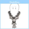 This jewelry set features a large, handcrafted necklace and earrings crafted from plastic and resin with electroplated finishes for durability. The water wave chain measures approximately 18 inches in length, with acrylic floral-themed pendants in vibrant gold or silver hues, accented by geometric patterns. Designed for versatile wear, it suits casual or fashionable occasions during the winter season. The set is easy to maintainsimply wipe clean with a damp cloth to preserve its vibrant appearance.