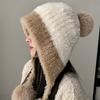 Winter cold hat big head circumference plush hanging ball cute ear protection hat children's ear cover fleece thickened color matching knitted hat