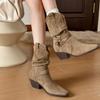 Thick Heel Wide Boots Western Boots High Heel Martin Boots Pointed Suede Belt Buckle Medium Boots Women's Autumn and Winter European and American R