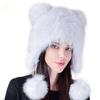 Dámské zimní bomberové kožešinové čepice Přírodní pravé liščí kožešinové bambule Uši Ocas Traperky Silné Teplé Venkovní Sněhové čepice