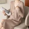 Long sweater skirt with coat for women over the knee with bottom v-neck knitted dress for women in autumn and winter