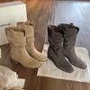 Cowhide version Chaohui, the same style has a height increase of 8cm, Korean round head V-mouth thick heel and thin stacked short boots, women's weste