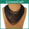 Wooden Geometric Handmade Bead Long Necklace Alloy Pendant For Women Decoration