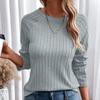 Long Sleeves Casual Pullover Round Neck Textured Loose Long-sleeved T-shirt Top