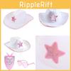 This set features a white star-themed cowboy hat, made from durable fabric with precise sewing craftsmanship. The unisex design measures approximately 40-30cm in diameter, ideal for various head sizes. It includes a matching silk scarf and pink glasses, suitable for themed parties or festive events. Wipe clean with a damp cloth to maintain its appearance.