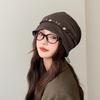 Autumn and winter hats, women's pentagram headgear, retro versatile stacking hat, large brim, small face, cold hat
