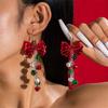 Bell Flower Earrings Female Red and Matching Jingling Element Crystal Green Color Ear Hooks