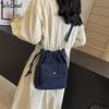 Vintage Denim Shoulder Bag Women's Crossbody Bag Commuter Drawstring Beveled Bucket Bag
