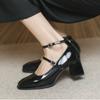 Women Autumn Footwear on Heeled Shoes for Women 2024 Japanese Style Lolita Mary Jane Black Bride Square Toe High Heels Gothic 39