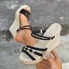 Fashion Summer Wedges Sandals Women 2025 Fashion New Blue Denim Beach Platform Sandals Woman Plus Size Ankle Straps Party Shoes Women