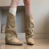 Square head inner height-increasing boots for women, thin large tube circumference folds, stacked pants tube boots, but knee-high knight boots