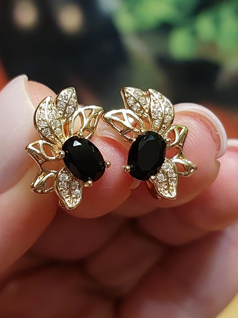 Vintage Green Oval Zircon Earrings Female Cute Flowers Hoop Earrings for Women Fashion Wedding Jewelry Mother's Day Gift