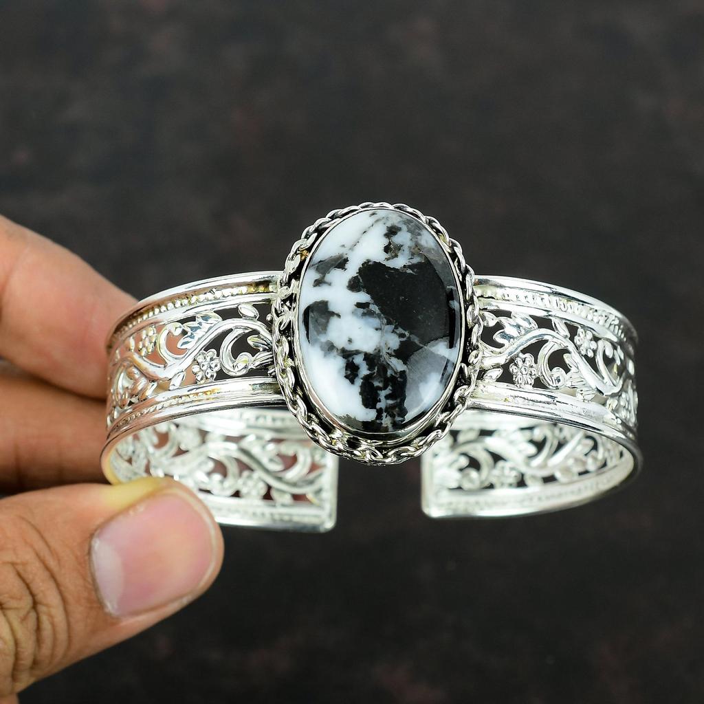 White Buffalo Turquoise Cuff Bracelet Gemstone Jewelry 925 Sterling Silver Bangle Handmade Adjustable Cuff Birthstone Jewelry Gifts For Him