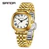 SANDA Women Quartz Watch Fashion Elegant Rose Gold Simple Roman Analog Display Stainless Steel Strap Wristwatch for Ladies