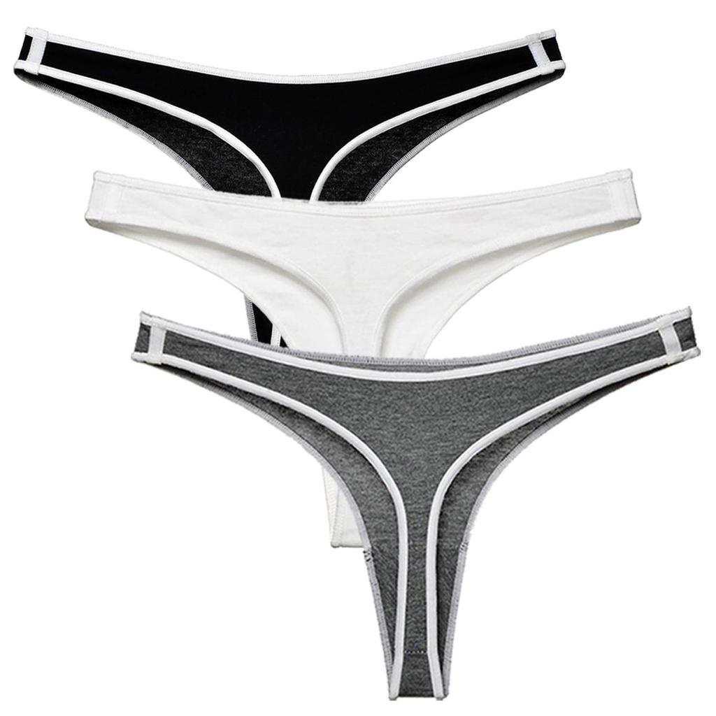 Beirou Stretch Sports Solid Set Women's Low-Rise T-Back Panties, Cotton, Style, Color, Simple, Non-Slip, Butt-Lifting, Breathable, 3-Piece