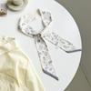 Spring Flower Print Silk Scarf Women's Versatile Long Strip Narrow Silk Scarf Pastoral Art Diagonal Streamer Tied Bag Ribbon