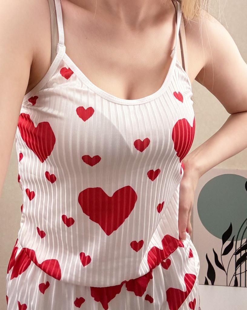 Women's Pajamas Set Sleepwear 2 PCS Short Tank Tops And Shorts S M L White Ventilate Soft Casual Love Printing