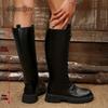 Fashion 2025 Autumn New High Top Motorcycle Boots Black Knee High Side Zipper Long Leather Boots Fashion Botas Largas Mujer Size 35 40